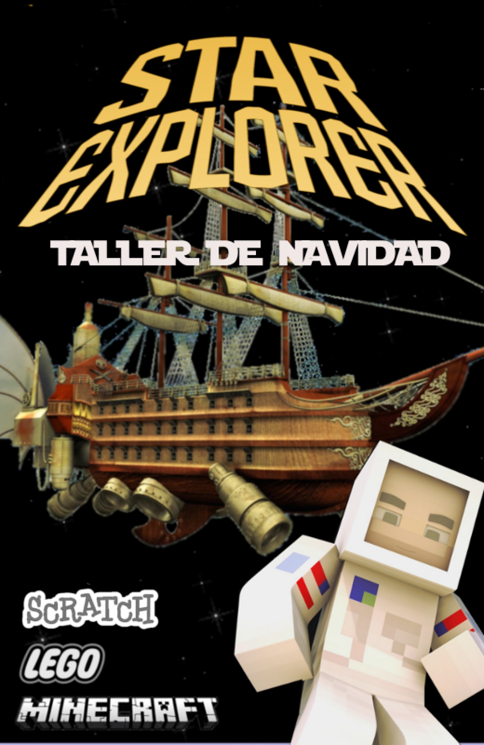 DESAFÍO STAR EXPLORER: Un taller temático con tres aventuras y una importante misión: salvar la tierra. LEGO, MINECRAFT y SCRATCH para resolver los retos de construcción y diseño que requiere una tarea de este tamaño. Con la mesa de robótica como maqueta de referencia, construiremos un cohete, viajaremos al espacio y desactivaremos el ordenador central que amenaza nuestro planeta.