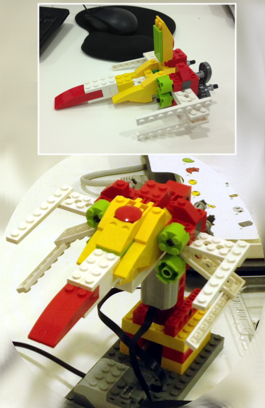 Se trata de un prototipo de la famosa nave espacial que puede cambiar la disposición de sus alas en pleno vuelo. La posición de la nave X-Wing se comprueba mediante el sensor de inclinación situado en la plataforma que soporta la nave. Cuando la inclinamos hacia atrás, sus alas se mueven para formar una letra X. Durante este ejercicio hablaremos de los clásicos de la ciencia-ficción, y cómo han cambiado con el progreso de la ciencia.