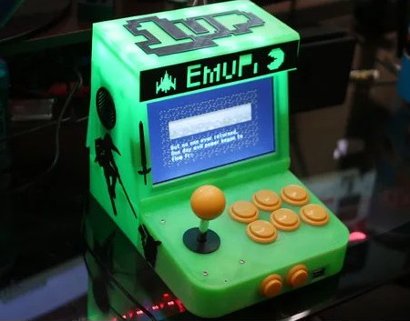 - Una consola con emuladores de videojuegos retro con un mando estilo arcade.